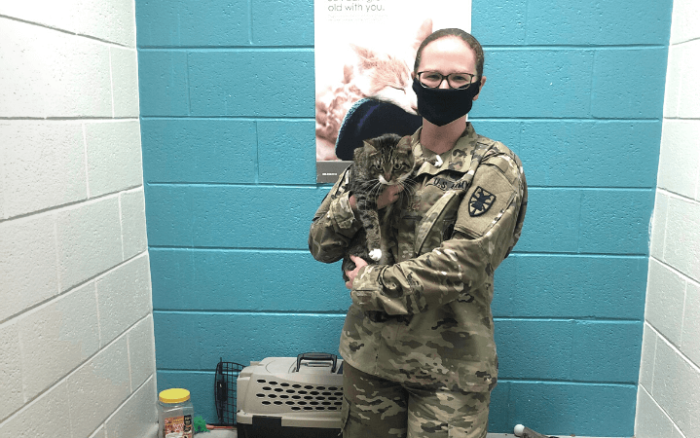 The Army soldier learned about Pets for Patriots and our companion pet adoption program for military veterans through one of our local partners, Virginia Beach SPCA. The shelter serves a community that is home to a large number of active, separated, and retired military personnel.
