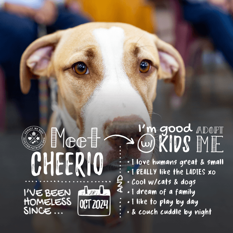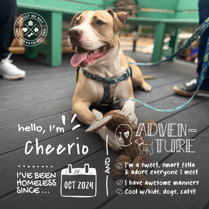 Cheerio is a happy boy and cool with kids, other dogs, even cats!