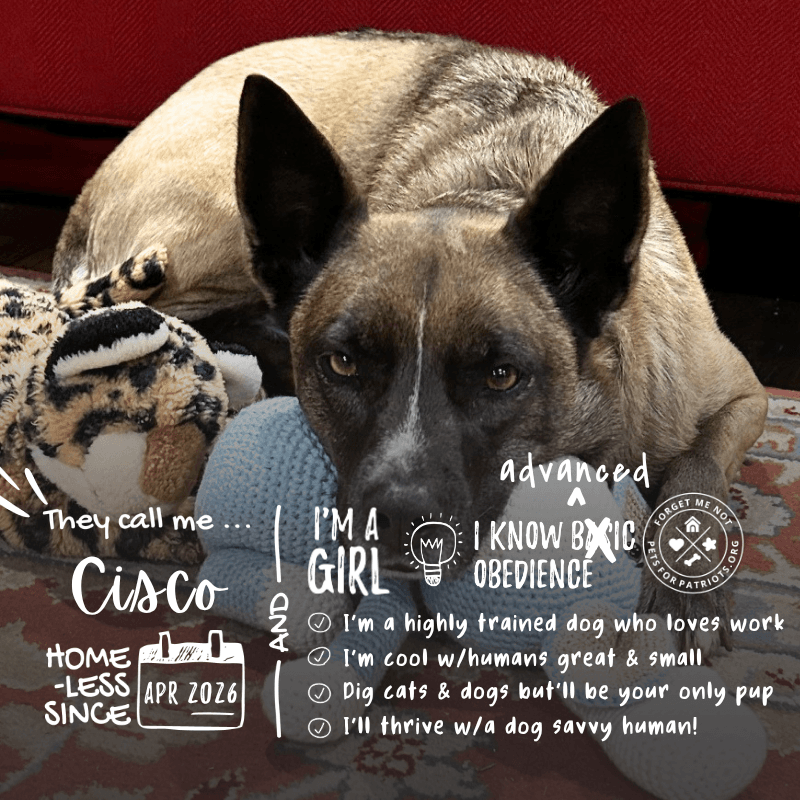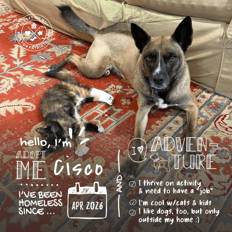• This is what I dream about when I dream about my perfect person or family: a household with or without kids—I'm cool either way—and with experienced adult handlers who will appreciate a smart, mission-oriented dog like me. I prefer a structured environment, and my humans will be interested in training, working, or otherwise actively engaging with me. I'm wicked smart and already know tons of commands, and am always open to learning more. I'll thrive with purpose, direction, and a strong bond with my people. Now I just need to find my new peeps!