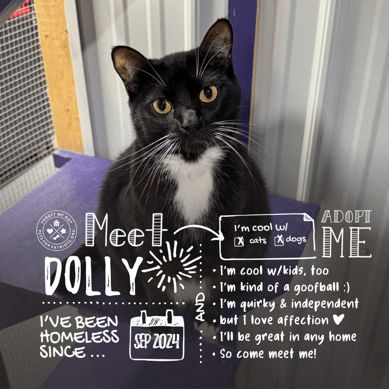 Dolly is a divine feline who loves kids, cats, and even dogs!