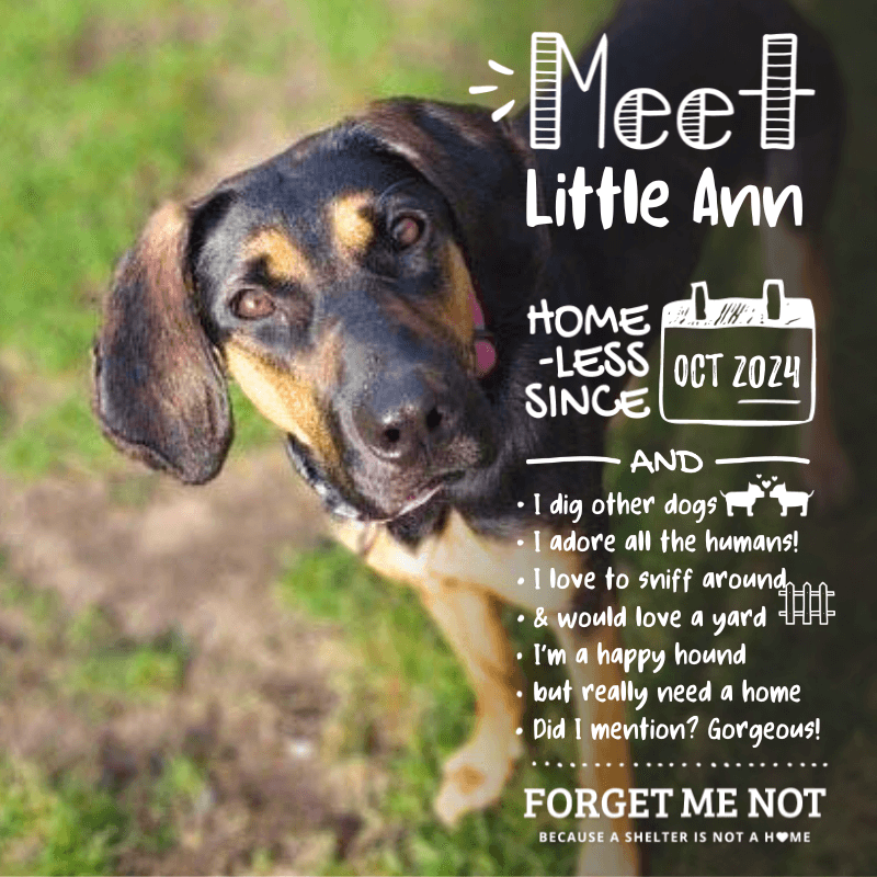 Little Ann is a hound on the hunt for a family with kids and other dogs!