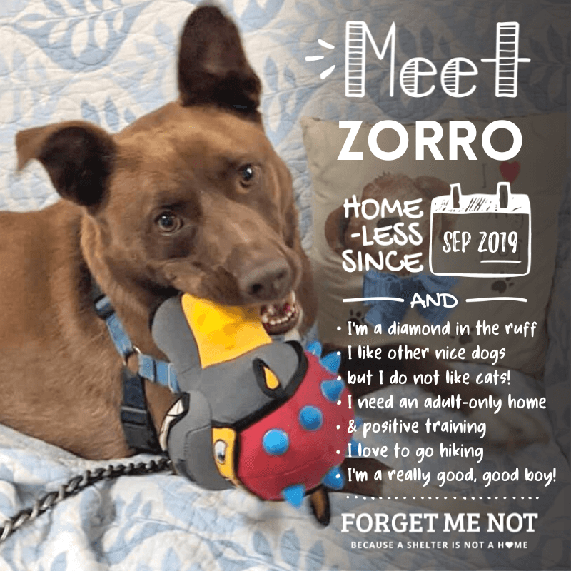 Zorro is a very, very good boy looking for an adult solo pet home!