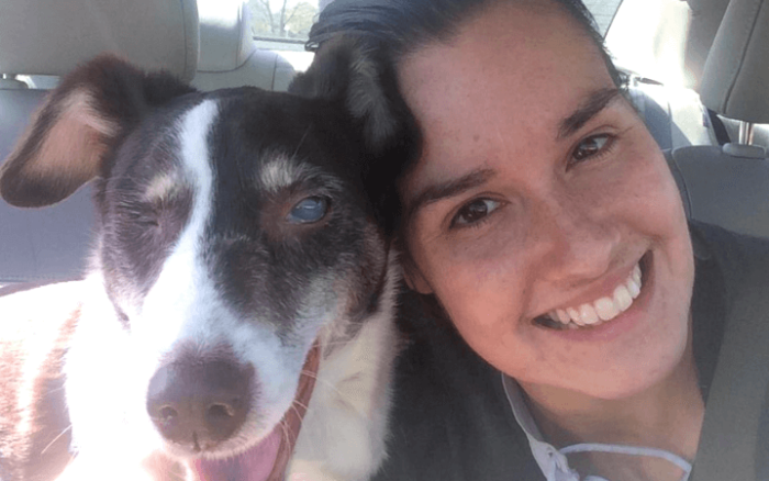 “After fostering her for a few months,” she says, “I feel in love with her and she fell in love with us, too. She is everything I want in a dog and best friend!”