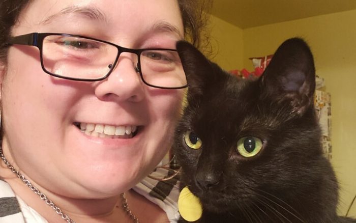 “I got him back,” she says of Fatty, “but I knew I needed the emotional support of another cat. My living arrangements made it easier to adopt a cat, plus I love cats. Not only did I want a cat, but I needed an animal for my own mental well-being.”